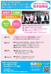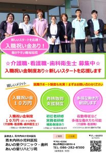 岡山市南区・「あいの里クリニック(歯科)」、介護老人保健施設「あいの里リハビリ苑」では、歯科衛生士・介護職・看護職を募集中です。